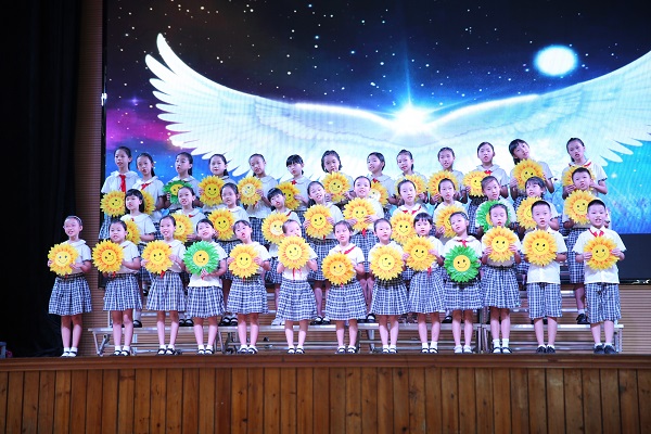 伴隨著收獲的喜悅,以“感恩有您――回憶童年――童夢起航”為線索的“童暢畢業(yè)秀”精彩綻放?!陡卸鞯男摹肥终Z舞、《感恩母校》詩歌朗誦、《少年》班級大合唱、《芒種》歌舞等,六年級各班精心準備的節(jié)目讓我們看到了“至誠至真”的童心少年風采,演繹著一份最美的記憶――在童心城小遇見最好的自己!