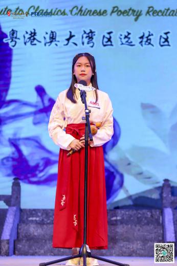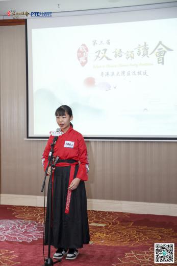 陳沂靜同學以其出色的中英朗誦表現(xiàn)、優(yōu)雅的葫蘆絲表演加上從容淡定且穩(wěn)健的臺風,贏得了評委的一致好評。