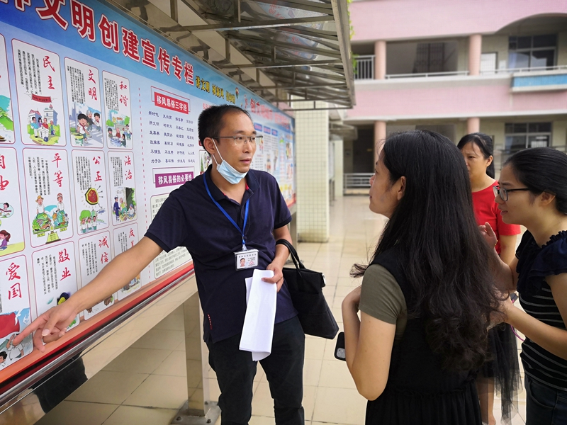 2020年8月13日上午,容桂街道教育局歐陽(yáng)效斌副股長(zhǎng)蒞臨紅旗小學(xué)指導(dǎo)”創(chuàng)文”工作。紅旗小學(xué)全體行政班子陪同檢查。