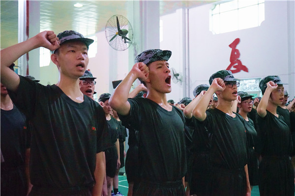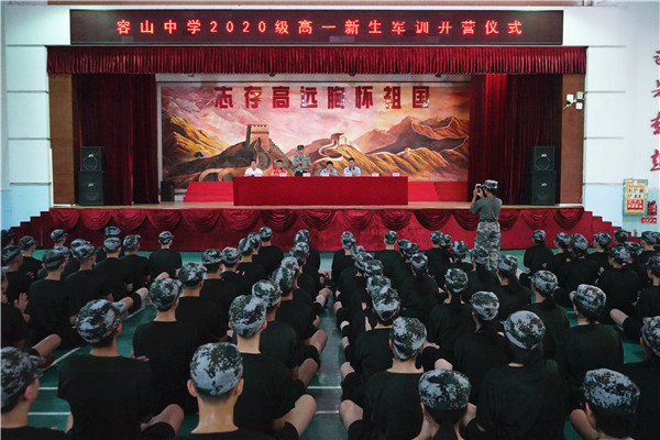 學生代表高一(1)班余瑤帶領(lǐng)全體學生進行軍訓宣誓,鏗鏘的誓言展現(xiàn)了容山學子戰(zhàn)勝困難、圓滿完成軍訓任務(wù)的決心。