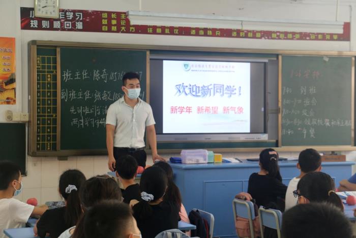 老師與孩子們親切的交流,孩子們也漸漸放松下來,融入到全新的大集體中,與同伴們開始了新的生活與新的學習之旅。班主任熱情地進行了自我介紹并交代相關事宜,同學們?nèi)斓男律鸂I生活也就此拉開序幕。