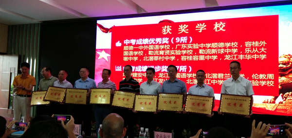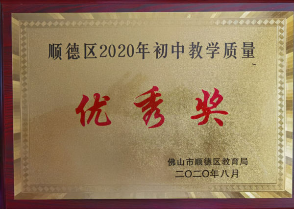 8月28日,順德區(qū)教育局召開了2020年中考質(zhì)量分析會。我校憑借優(yōu)異的中考成績榮獲“順德區(qū)2020年初中教學質(zhì)量優(yōu)秀獎”。會上,豐華中學賴壽山校長從順德區(qū)教育局領導手上接過金閃閃、沉甸甸的牌匾。