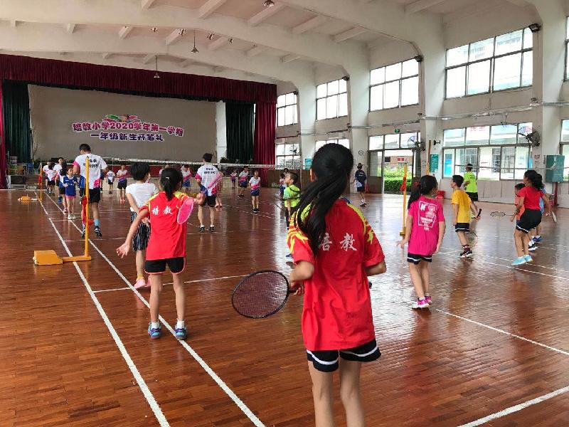 為弘揚(yáng)體育精神,普及羽毛球知識(shí),豐富校園生活,順德體校開(kāi)展了“羽毛球進(jìn)校園,體育公益培訓(xùn)活動(dòng)”。2020年9月19日下午,順德區(qū)體校組織教練和學(xué)員走進(jìn)倫教培教小學(xué)負(fù)責(zé)輸送專業(yè)羽毛球技術(shù)和比賽經(jīng)驗(yàn)交流。首先,體校的教練們帶領(lǐng)學(xué)生進(jìn)行熱身訓(xùn)練,并呼吁大家養(yǎng)成良好的運(yùn)動(dòng)前熱身的習(xí)慣,以保護(hù)關(guān)節(jié)肌肉。熱身結(jié)束后,教練結(jié)合小學(xué)生的理解能力,用幽默生動(dòng)的語(yǔ)言為學(xué)生講解羽毛球運(yùn)動(dòng)中的動(dòng)作要領(lǐng),并逐一規(guī)范各個(gè)基本動(dòng)作。課堂上氛圍融洽,學(xué)生學(xué)習(xí)興趣高漲,孩子紛紛愛(ài)上了羽毛球這項(xiàng)運(yùn)動(dòng)。隨后組織不同年齡階段的學(xué)生進(jìn)行比賽,通過(guò)比賽發(fā)現(xiàn)問(wèn)題并且給予建議。最后,體校隊(duì)員代表與培教小學(xué)代表進(jìn)行表演示范賽??罩械挠鹈驎r(shí)而像輕盈的小鳥(niǎo)在空中飛翔,時(shí)而像一道道閃電利箭在空中來(lái)回激戰(zhàn),讓人眼花繚亂,目不暇接。此次公益羽毛球進(jìn)校園活動(dòng),不僅給孩子們帶來(lái)羽毛球運(yùn)動(dòng)的樂(lè)趣,同時(shí)激發(fā)了師生投身到羽毛球運(yùn)動(dòng)的積極性。在專業(yè)教練的指導(dǎo)下,更多師生掌握了規(guī)范正確的動(dòng)作,為培教小學(xué)的羽毛球運(yùn)動(dòng)起到了扎實(shí)有效地推動(dòng)作用。