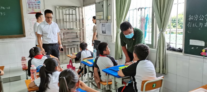 2020年9月18日上午,容桂街道教育辦公室副主任黃智宏、基礎(chǔ)教育股股長胥執(zhí)純蒞臨小黃圃小學指導午餐午休工作。小黃圃小學許社初校長、黃繼紅副校長、曾愛輝主任陪同檢查。