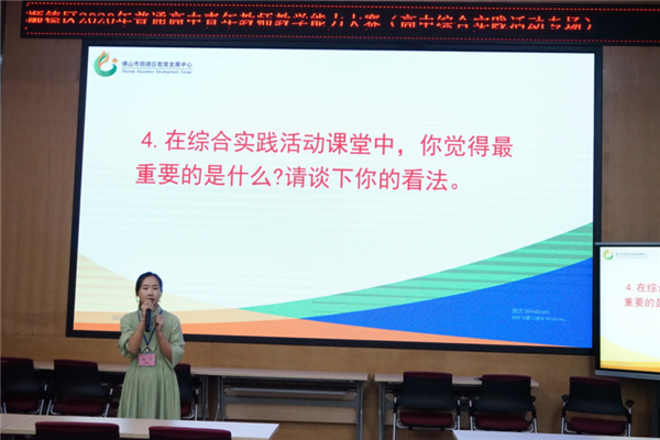 “即興演講”環(huán)節(jié),順德區(qū)給各位選手4分鐘的抽簽準備, 5分鐘即興演講要求參賽選手現(xiàn)場抽取題目,隨后答辯2-3分鐘。我校胡華杰老師抽到“在綜合實踐活動課堂中,你覺得最要的是什么,請談談你的看法”的題目, 根據(jù)題目,她覺得綜合實踐活動課程的實施,離不開學生主動用心的實踐和各種實際操作活動,突出學生主體,意味著把學生作為課程的主體,一切從學生的實際出發(fā),激情演講獲得了評委的一致好評。