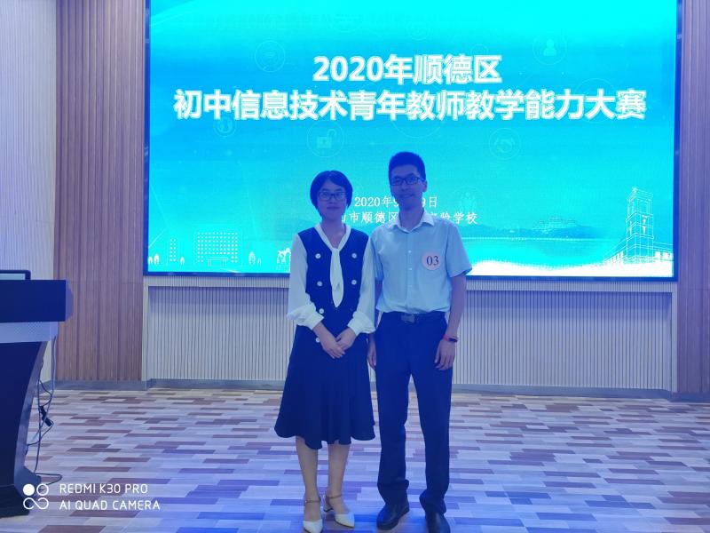 2020年9月29日,順德區(qū)初中信息技術青年教師教學能力大賽在鳳城實驗學校舉行。來自區(qū)內各鎮(zhèn)街經過選拔出來的21名信息技術教師代表參加了決賽。最終經過緊張且激烈的比拼后,我校的馮偉強老師、艾琪老師獲得了本次比賽的一等獎,馮偉強老師更是將代表順德區(qū)參加佛山市賽!