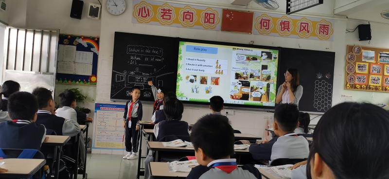 廖曉彤老師通過情景導入的方式,使學生在具體的情景中理解英語對話的大意,掌握正確的語音語調進行朗讀對話。