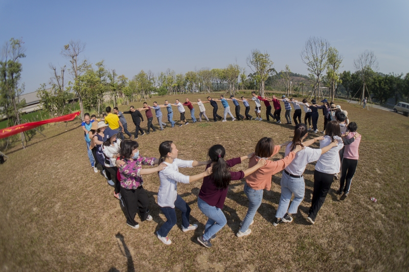 次日,陽光明媚。一日之際在于晨,老師們活力滿滿地赴團(tuán)建基地參加團(tuán)建活動。在簡短的熱身游戲后,教練將團(tuán)隊隨機(jī)分成4個小分隊,并由隊員推選出隊長和副隊長,制作隊旗、創(chuàng)建分隊文化。隨后,教練說明團(tuán)隊任務(wù)要求,隊長、副隊長率領(lǐng)隊員們完成既定任務(wù),為了高效完成任務(wù),各個小分隊在緊張的計時賽中團(tuán)結(jié)協(xié)作、集思廣益。最終,每個分隊都以高度默契、勇往直前、團(tuán)結(jié)合作的團(tuán)隊精神,取得了不俗的成績。