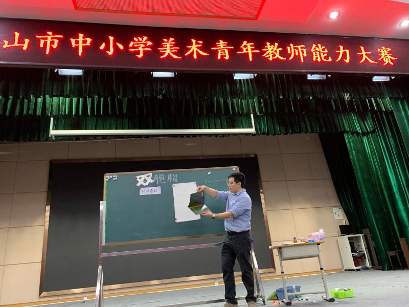 本次比賽分兩天進行。在第一天的比賽中,主要考察美術(shù)教師的專業(yè)技術(shù)素養(yǎng)。比賽分上下午兩場分別進行繪畫創(chuàng)作和紙立體造型設(shè)計比賽。在比賽中,李一飛老師不急不躁,努力發(fā)揮出自己的最佳水平,無論是繪畫還是紙立體手工都得到了比賽評委的一致稱贊。