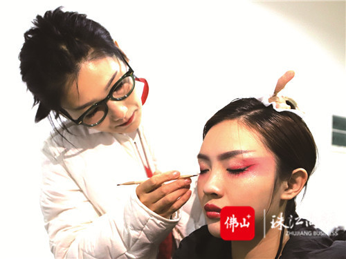 熱心家長參與演出化妝。/學(xué)校供圖