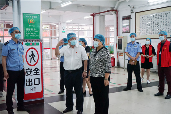 在校園路上,劉國興副區(qū)長十分關(guān)心考點的情況及存在的困難。主考區(qū)淑玲向劉國興副區(qū)長詳細(xì)匯報考點的準(zhǔn)備情況,亦提出學(xué)校周邊存在交通擁堵和施工噪音等問題。在現(xiàn)場,劉國興副區(qū)長馬上要求公安交警部門要出動足夠人力、物力,加強協(xié)調(diào),做好學(xué)校及周邊的安全保衛(wèi)和交通疏導(dǎo)工作,同時,要求街道國土城建部門在考試期間要停止學(xué)校周邊工地的施工作業(yè)。劉國興副區(qū)長強調(diào),考試前后,學(xué)生接送要加強管控,注意學(xué)生人身安全及道路交通安全。其次,要加強師生身體狀況的監(jiān)控,嚴(yán)防疫情的輸入及擴散,保障考生的安全。最后,劉國興副區(qū)長還特別提醒,學(xué)校要關(guān)注學(xué)生的思想情緒和心理健康問題,注意調(diào)適考試壓力,調(diào)整心態(tài),讓學(xué)生輕松應(yīng)對考試。