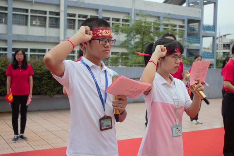 繼而,初三(10)班余芷琪、初三(6)班肖田田同學帶領全體同學進行宣誓。