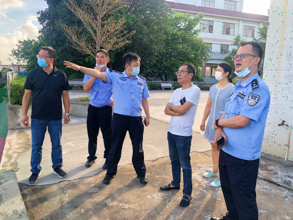 為切實做好常態(tài)化疫情防控下校園安全工作,防止安全事故的發(fā)生,進一步夯實校園安全工作基礎,凈化校園及周邊的治安秩序,維護校園安全。7月7日下午,容桂總商會副會長(秘書長)、小黃圃小學管委會主任黃淼,容桂街道黨工委委員、容桂派出所所長汪剛,容桂派出所辦公室主任吳沛明,容桂派出所城東中隊長伍和雄一行到小黃圃小學視察校園安全工作。學校許社初校長、黃繼紅副校長等行政陪同。