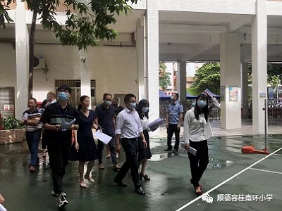 2020年8月13日下午,容桂育美教育集團(tuán)南環(huán)小學(xué)迎接容桂街道創(chuàng)建全國(guó)文明城市辦公室成員督導(dǎo)檢查。辦公室成員組由容桂街道領(lǐng)導(dǎo)街道辦事處歐勝軍主任、容桂街道黨委劉英華副書(shū)記、容桂街道創(chuàng)建辦相關(guān)人員以及來(lái)自街道經(jīng)科局、街道衛(wèi)計(jì)局、街道教育局、容桂環(huán)衛(wèi)城管分局、容桂市監(jiān)分局分管創(chuàng)文工作的副職干部組成。容桂南環(huán)小學(xué)行政領(lǐng)導(dǎo)陪同督導(dǎo)組進(jìn)行了校園視察。