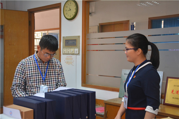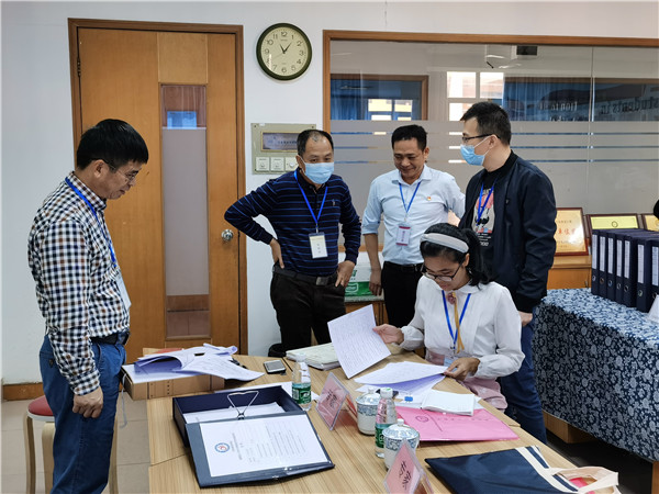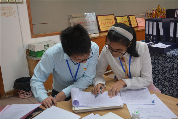 學(xué)校領(lǐng)導(dǎo)陪同專家們進(jìn)行資料復(fù)核