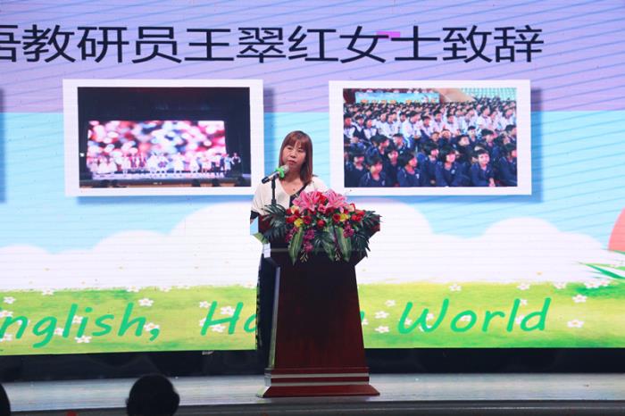 開幕式在歡快的英語歌曲中正式拉開了帷幕。首先同學們一起欣賞了為此次嘉年華特制的視頻,回顧了上一屆嘉年華的精彩,觀看了我們特色外教課程的精彩瞬間。欣賞視頻后,勒流街道初中英語教研員王翠紅女士用一口流利的英語為本次嘉年華致開幕辭,她表示非常感謝學校的盛情邀請,充分肯定了我校濃厚的英語文化氛圍,舉辦英語嘉年華給學生提供了一個英語展示的平臺,希望同學們可以通過嘉年華活動找到學習英語的樂趣,愛上英語。