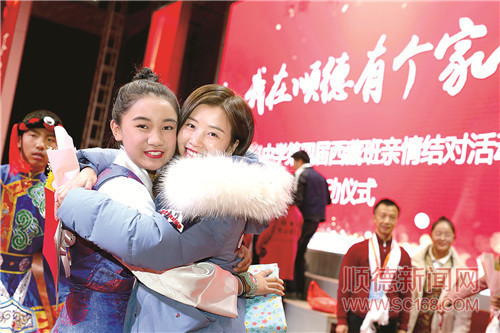 當(dāng)晚,江義中學(xué)舉行第四屆西藏班“我在順德有個(gè)家”結(jié)對(duì)儀式?;顒?dòng)中,學(xué)校對(duì)此前參與結(jié)對(duì)的“最美順爸順?gòu)尅苯o予表彰,為新結(jié)對(duì)家庭頒發(fā)聘書(shū)。40戶結(jié)對(duì)家庭點(diǎn)燃手中的蠟燭,開(kāi)啟親情結(jié)對(duì)之旅。12歲女孩益西切措第二次見(jiàn)到吳女士,一聲“順?gòu)尅泵摽诙?,吳女士連忙與她擁抱一起。吳女士曾去西藏旅游,看到當(dāng)?shù)睾⒆涌蓯?ài)純樸,繼第一屆學(xué)生結(jié)對(duì)之后再次參與結(jié)對(duì),她在外地上大學(xué)的兒子聽(tīng)說(shuō)家里多了朵“格?;ā?,勸爸爸媽媽要像疼愛(ài)兒子一樣疼愛(ài)西藏的孩子?!拔遗畠耗挲g跟她差不多,她們倆會(huì)相處得來(lái)的?!毙陆Y(jié)對(duì)的“順?gòu)尅绷闻勘硎?,她將做最美味的順德菜,把藏族孩子養(yǎng)得白白胖胖的,讓她在千里之外也能感受到濃濃的家庭溫暖。據(jù)了解,今年春節(jié),“順爸順?gòu)尅睂盐鞑睾⒆咏踊丶抑?,一同歡度農(nóng)歷新春佳節(jié)。