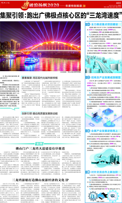 過(guò)去一年,三龍灣高標(biāo)準(zhǔn)建設(shè)、高質(zhì)量發(fā)展,著力提升創(chuàng)新承載力、驅(qū)動(dòng)力和影響力,跑出廣佛極點(diǎn)核心區(qū)的“三龍灣速度”,引領(lǐng)佛山開(kāi)啟“十四五”新征程。