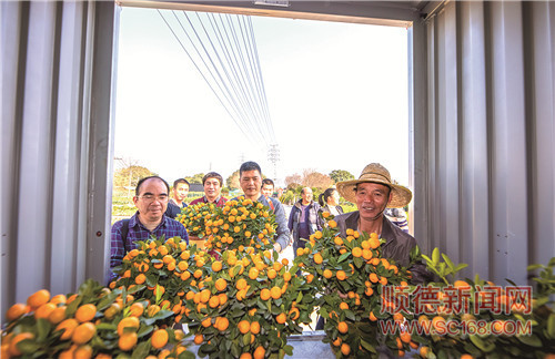 協(xié)會(huì)的會(huì)員們來(lái)到陳村仙涌年桔田選購(gòu)年桔,當(dāng)天一次性購(gòu)買(mǎi)了110盆四季桔。/珠江商報(bào)記者周焯杰攝